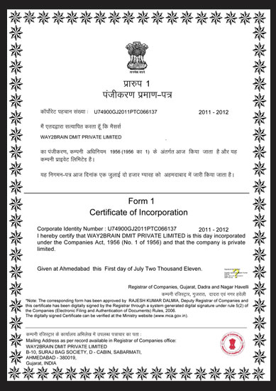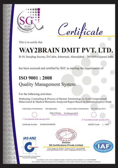 Way2Brain is registered under Indian Companies Act, 1956. Way2Brain is ISO - 9001:2008 Certified ensures highest standards of quality. Way2Brain is managed by mix of young and experienced team of professionals.